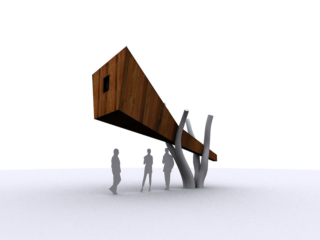 It is on these beams that the secondary structure would mingle into the tree and its shape would be like a funnel imbedded onto the branches.