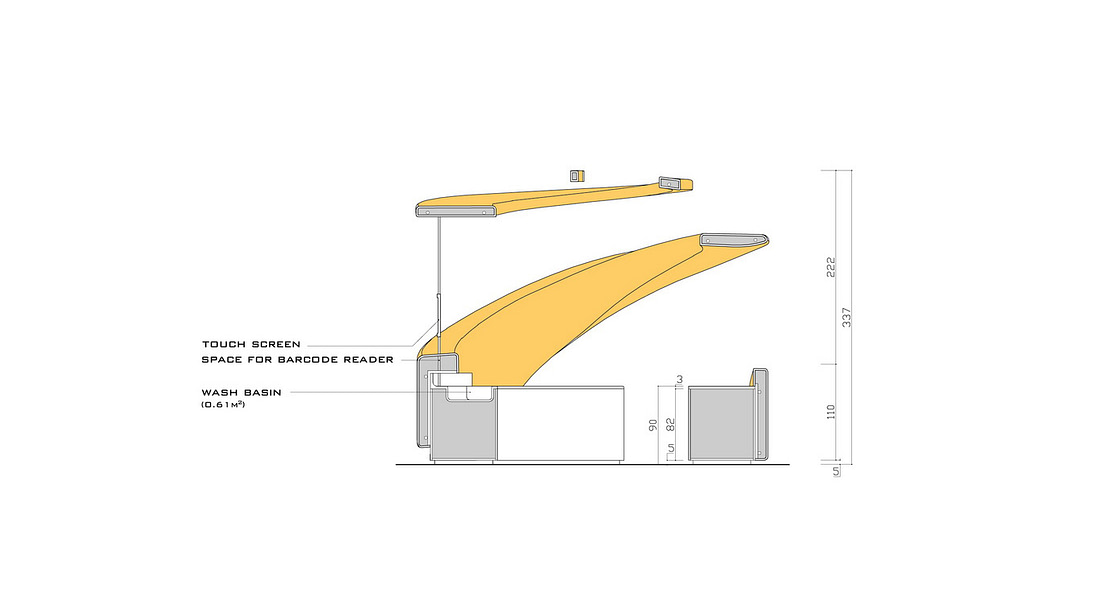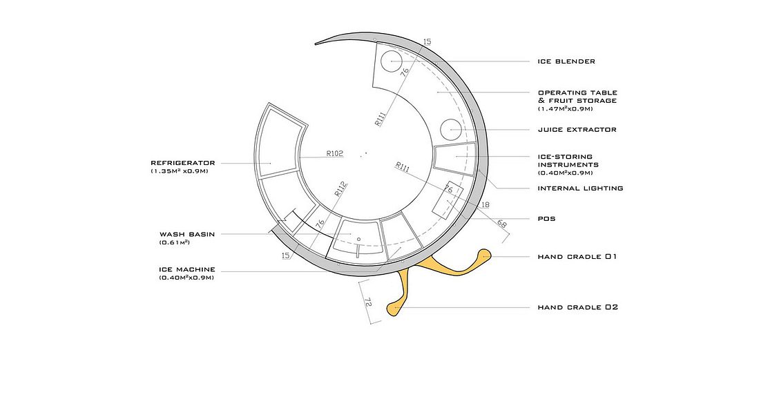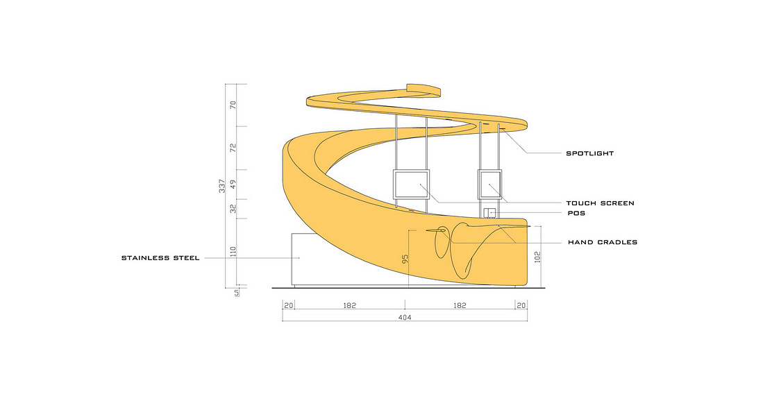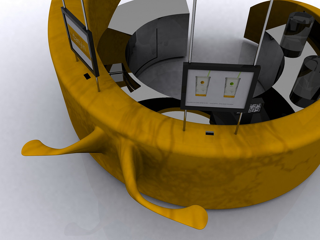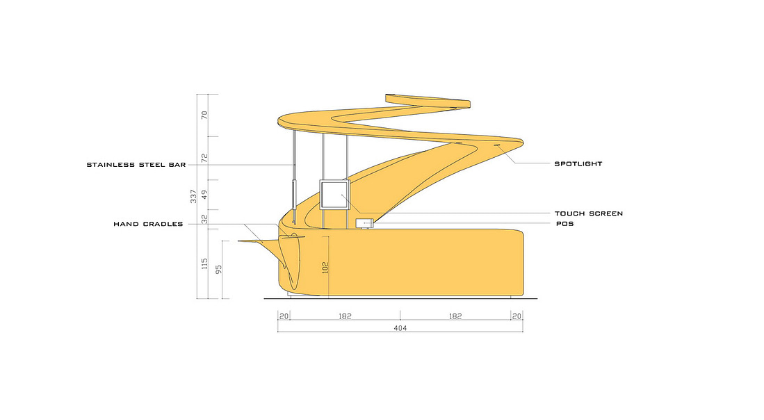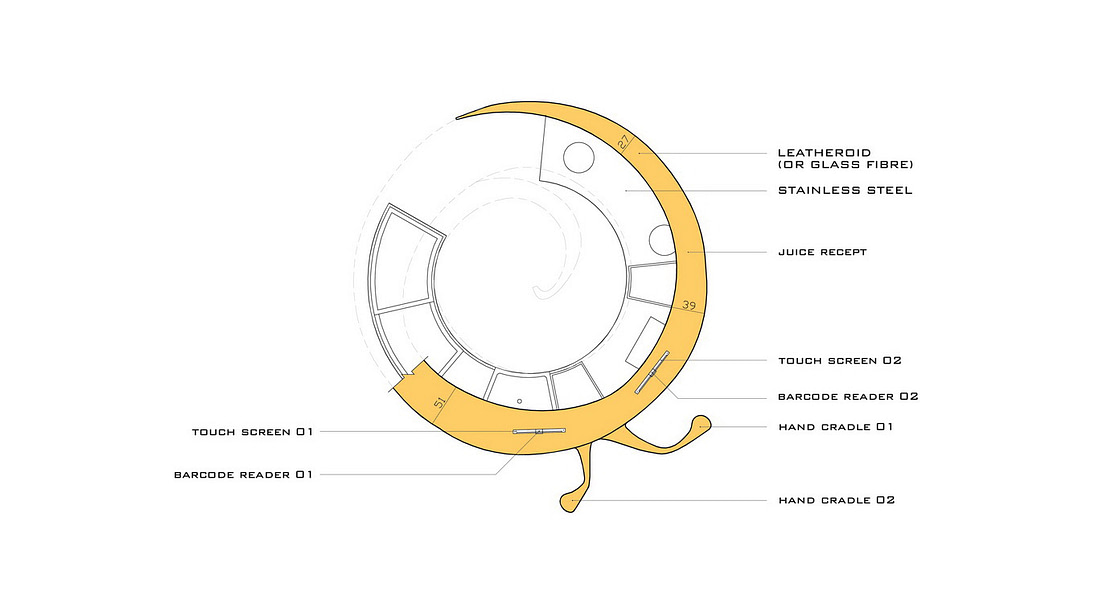 The kiosk is equipped with an electronic system that will check your health situation thanks to hands cradles (that will sense the electricity from your hands) and will add the right vitamins and Chinese traditional medicine to your fruit juice. Each customer will have a code so the network system can follow their health situation in wherever kiosk they are around the world.