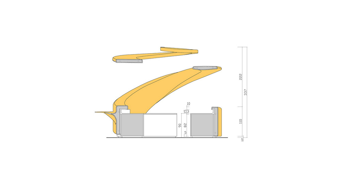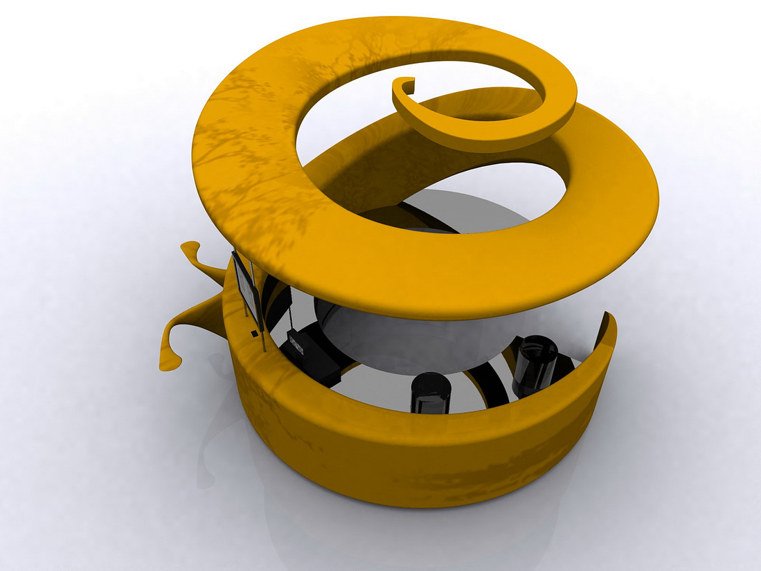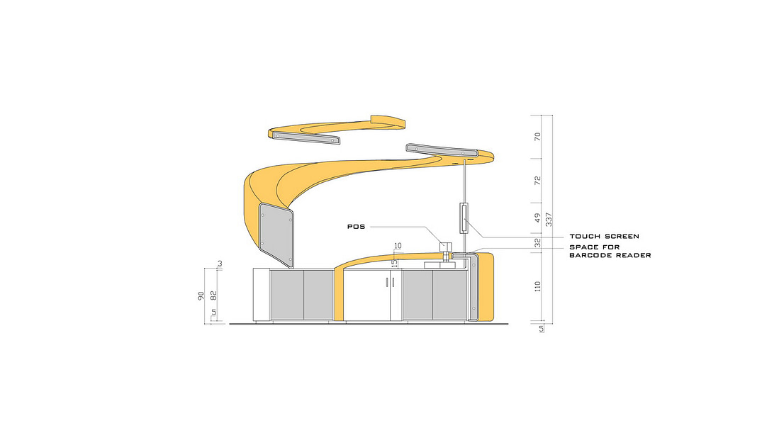 The Kiosk shape and surface concept is related with organic feelings and materials.