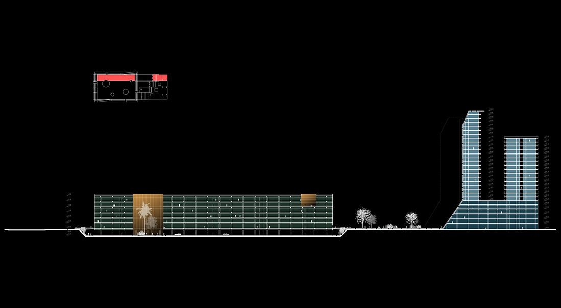 In the top part of the glass volume there are the residential towers composed of apartments of 50, 60 and 70 square meters. Most of them are orientated facing southeast, with a small percentage facing northwest.