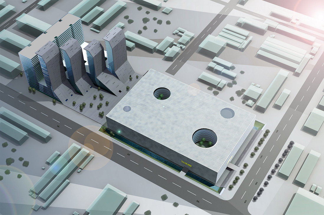 我们的出发点是希望通过沈阳红星美凯龙世博家具广场设计,在沈阳市树立起一座重要的,具有时代意义的地标建筑。当人们经过这里时立刻就能够注意到这个巨大的标志物。