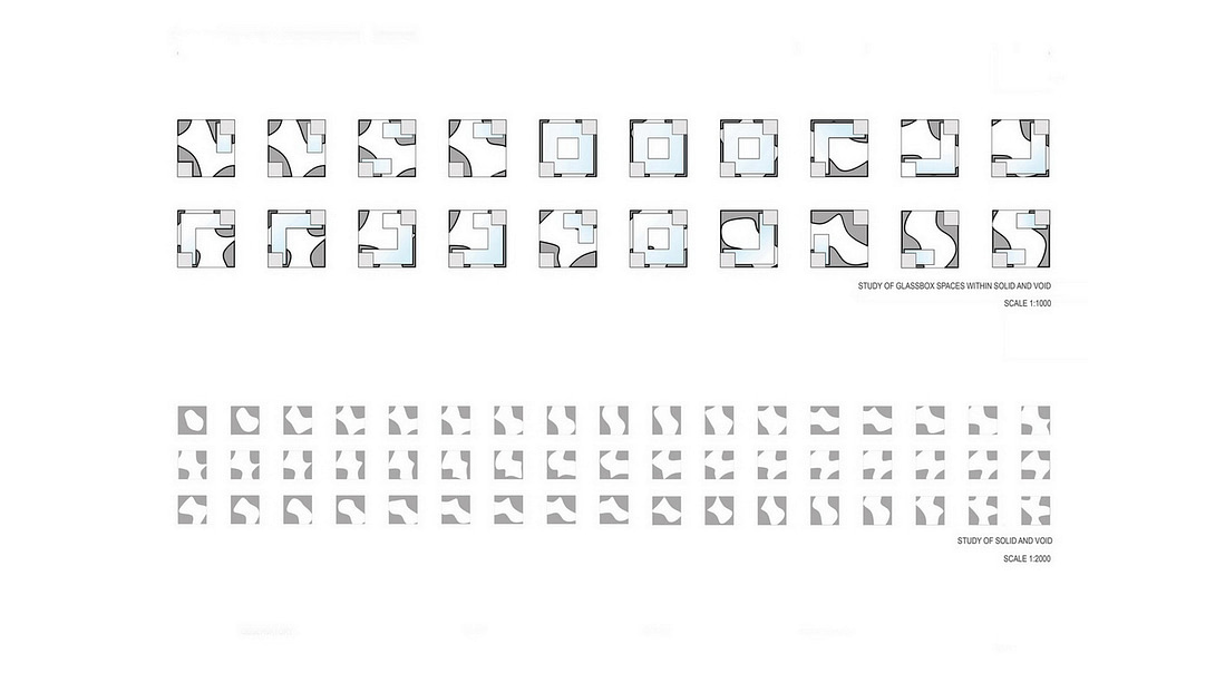 The greater the thermal difference and the height of the structure, the greater the buoyancy force, and thus the chimney effect, consequently this void design will create an big drive of vertical natural ventilation that will help to cool down the habited glass volumes during the wormer season saving energy.