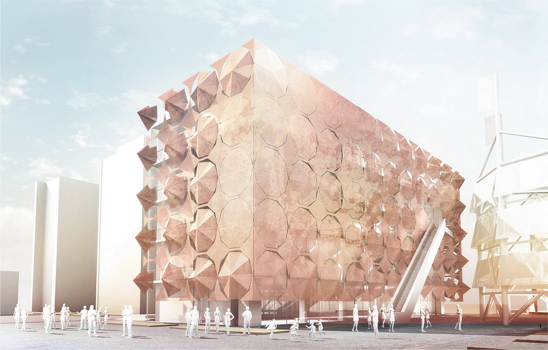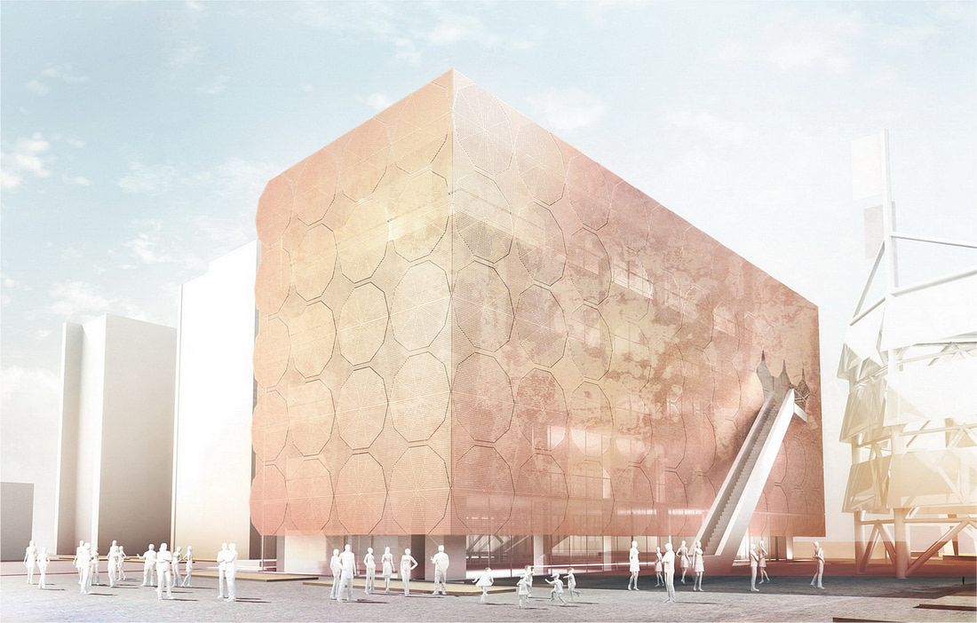 New façade for the ex Madrid Pavilion in the Shanghai Expo site.