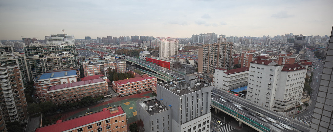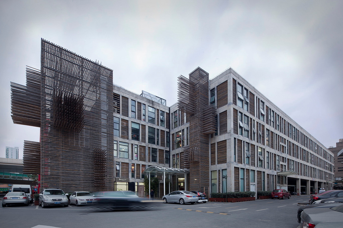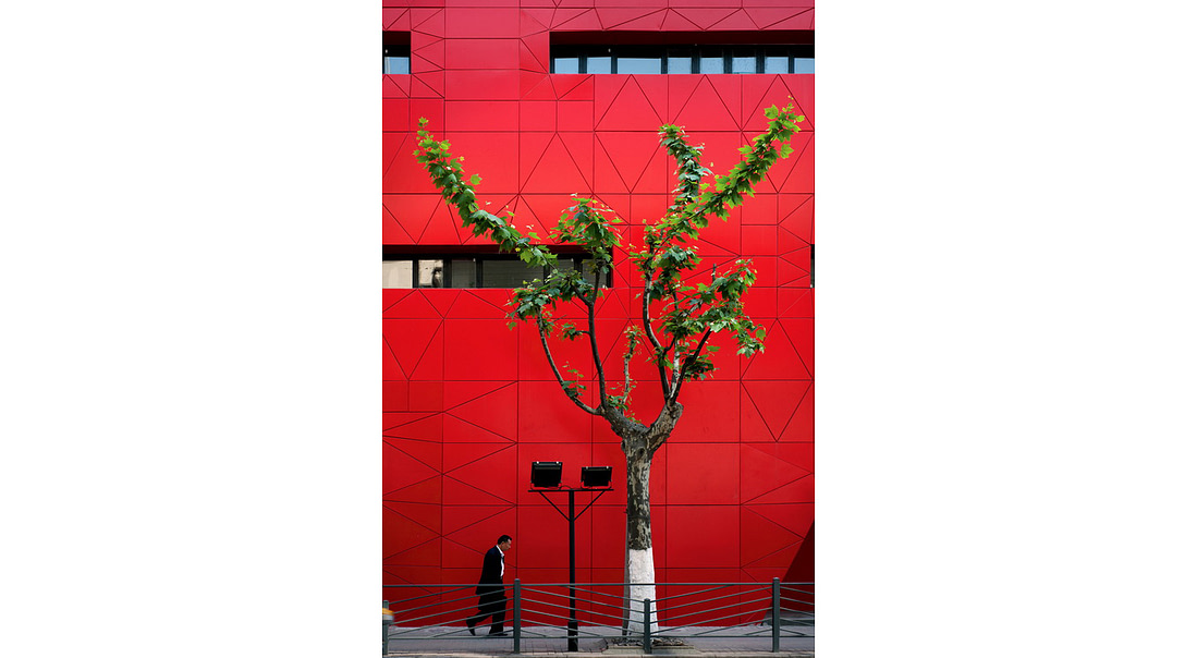 如果你在谷歌地图上输入以下数据:+31° 16’ 9.45”, +121°27’ 14.93”,一个颇具规模的缩放视角会将一栋长方形建筑引领到你的面前,它的中央庭院被行人天桥所分割跨越,华丽的红色长墙像屏障般保护着内部环境区域不被外界所传来的高架桥噪音所干扰。