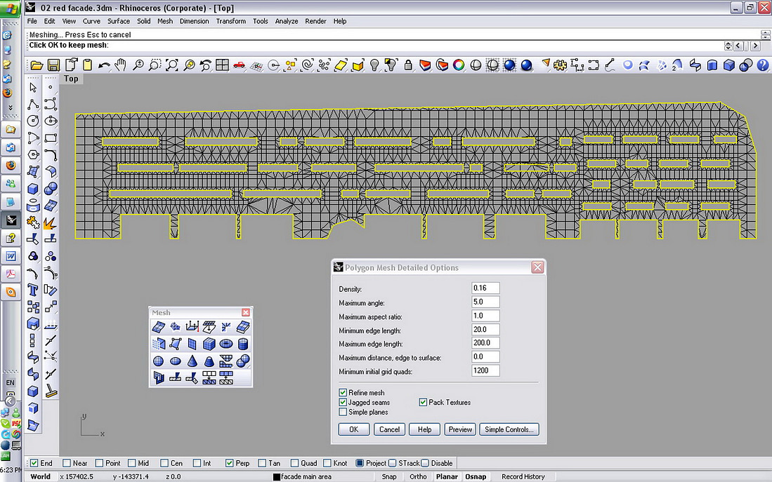 L’idea della texture, generata dall’accostamento di poligoni triangolari dalle forme e dalle dimensioni variabili, nasce da un’intuizione diretta, la trasposizione architettonica dell’interfaccia grafica di uno dei principali software per la modellazione 3D.