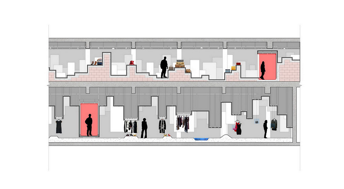 The concept is as simple as this but create a very intricate and complex labyrinthic space that will challenge your shopping experience.