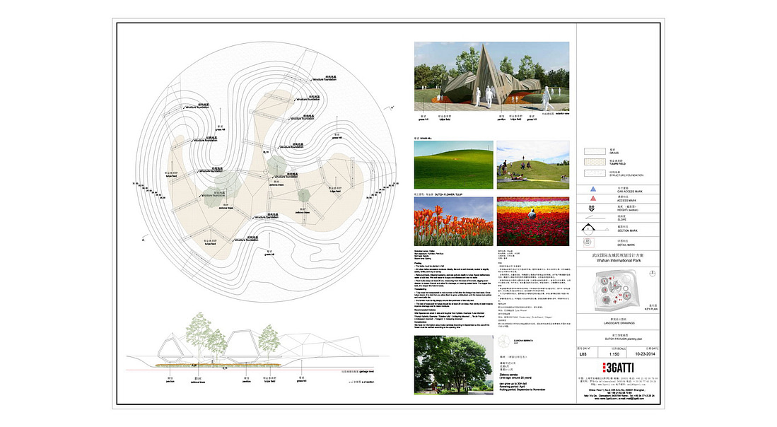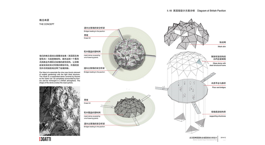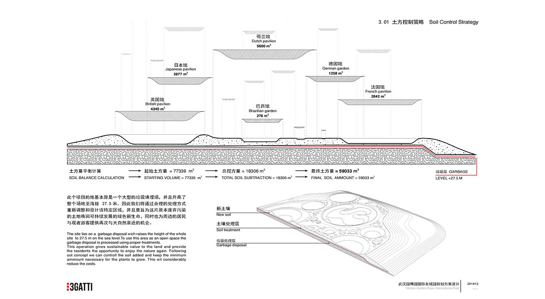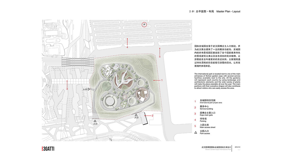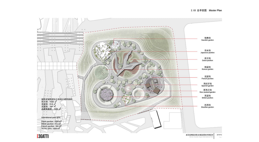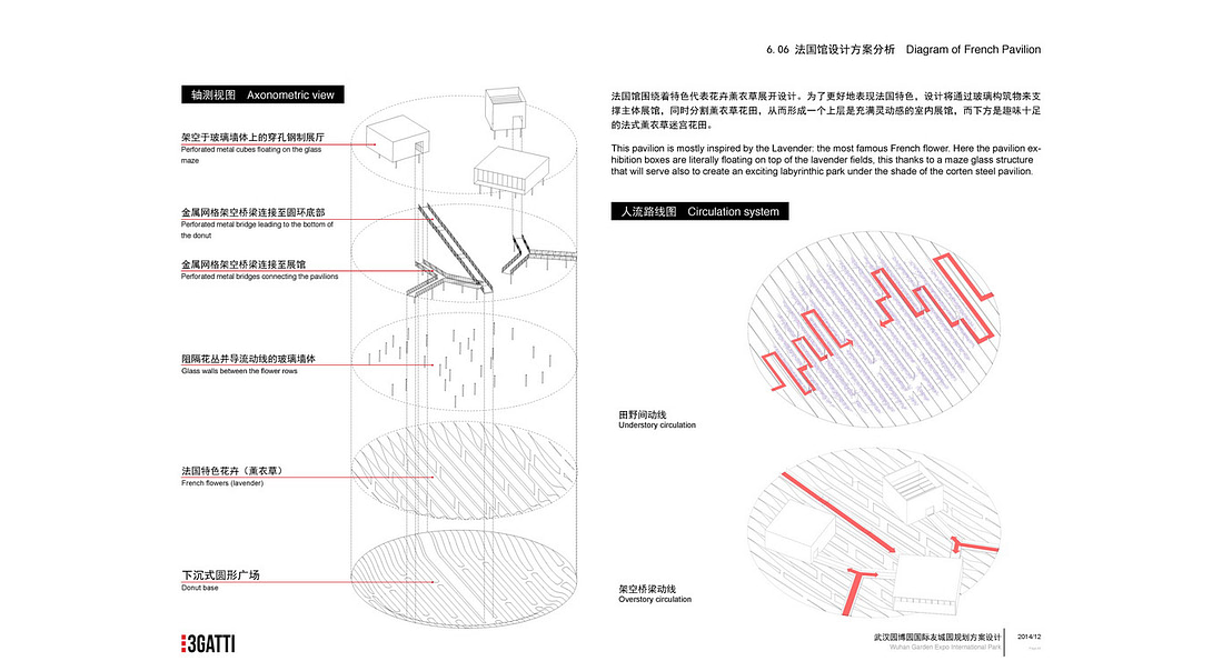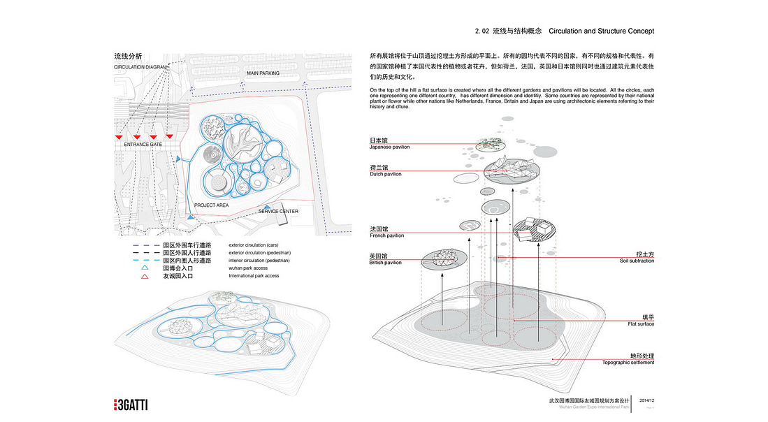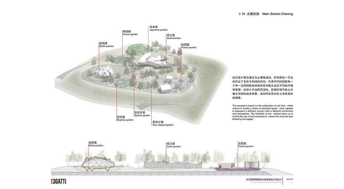 This project is a theme park representing the gardens and atmospheres of different countries of the world and is meant to be built for the 2015 Wuhan Garden Expo.