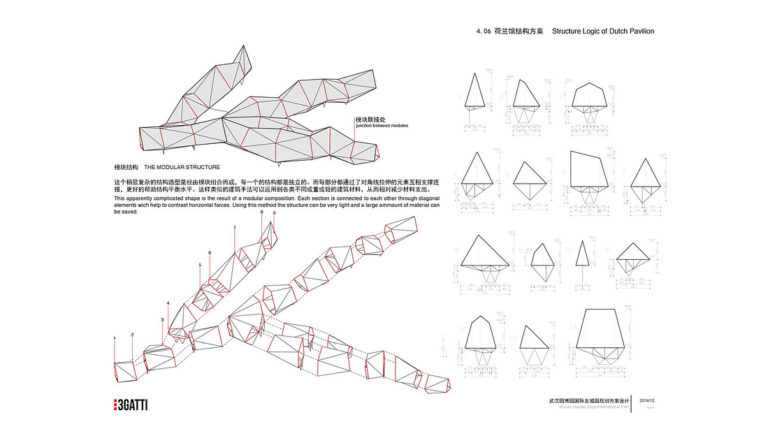 最后,荷兰馆作为友城园内较为中心的展馆,外形呈现为充满现代荷兰特色的多边形分枝状,使游客能四通八达的通向园区内各个不同区域。