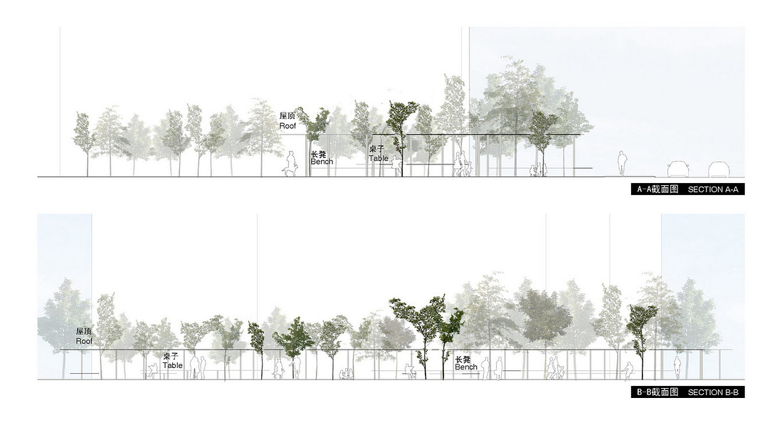 项目内容:城市公共空间,绿地设计,庇护所,长桌,长椅