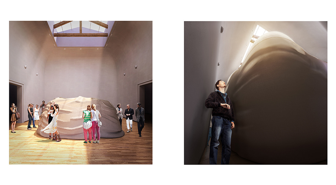 To reduce the interior air volume of the piece, the inflatable object would be built with a void in