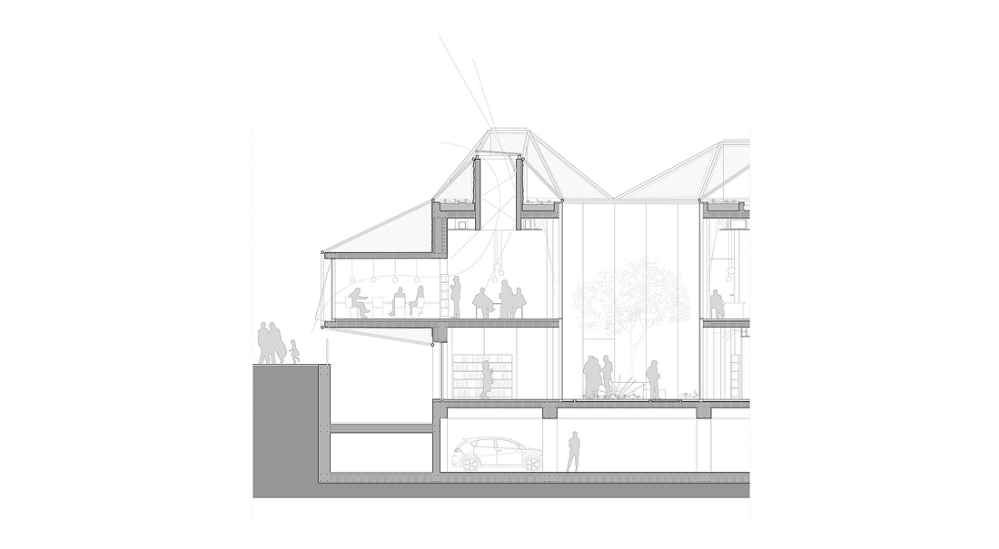 With this concept we wanted to create a recognizable landmark in the Madrid district. A public building that is not hiding from the citizens but make them curious and attract them inside.