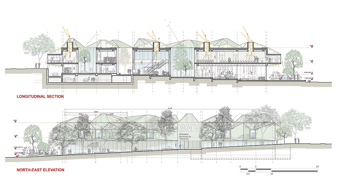 Questa biblioteca si vuole proporre non come mero spazio dedicato ai libri ma come un complesso organismo che interagisce con il quartiere in maniera aperta e flessibile stimolando tematiche legate all’ambiente e alla vita civica.