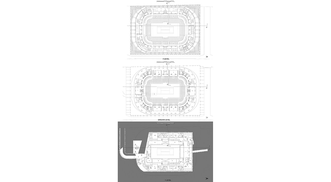 Al piano terra è previsto un cambio di destinazione per quanto riguarda gli ambienti riservati, per rispondere all’esigenza di trovare posto a delle postazioni insonorizzate per la telecronaca delle partite. Il luogo individuato su entrambi i lati corti, è quello in prossimità del lounge riservato alle autorità (che troverebbe posto al piano primo), destinandolo ad atrio stampa, attualmente troppo piccolo. Dall’altro lato, le postazioni sarebbero, in prossimità del main sponsor, che potrà contare su una distribuzione su tre piani direttamente collegati degli ambienti a lui riservati, compreso il recupero del locale interrato.