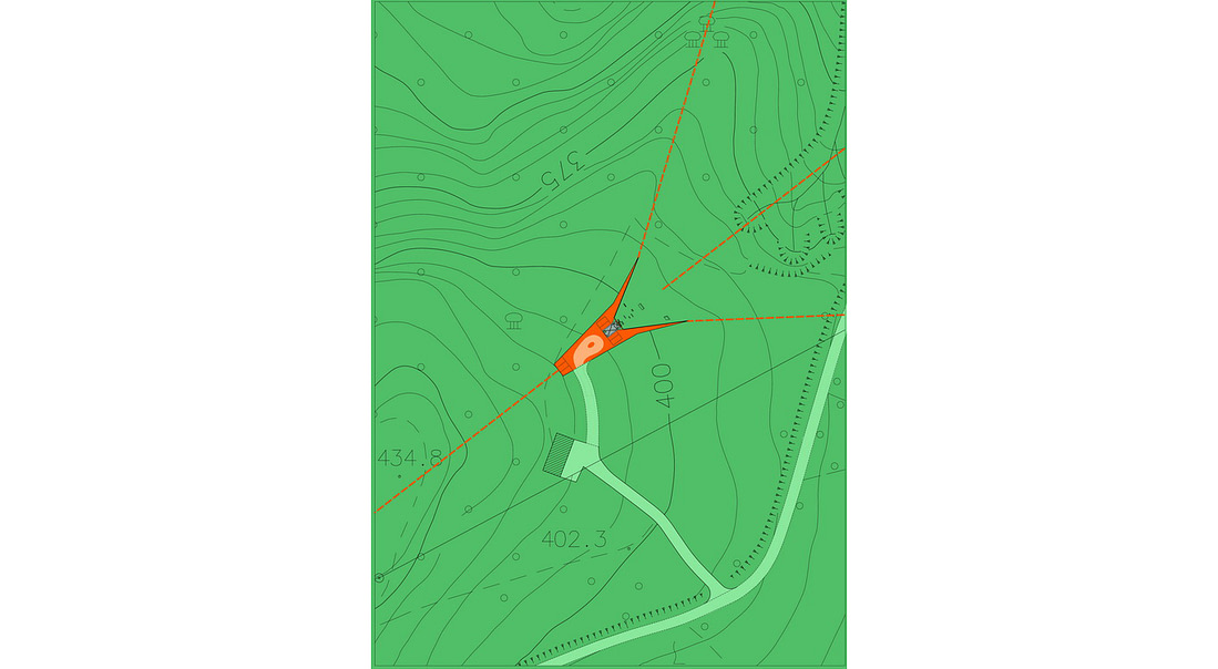 The location foreseen for the tower is strategic for the diffusion of radio and telephone signals, it is on an axis with the town and it also is visible from a wide surrounding area. It is therefore of extreme importance to ensure that it would fit harmoniously into the landscape, particularly on the side towards Sogliano, while at the same time the visibility of the structure must be guaranteed. The tower would play an important but hidden role, and would house technological components (access/servicing stairs, equipment for telecommunications, car park) as far as possible without letting them be seen.