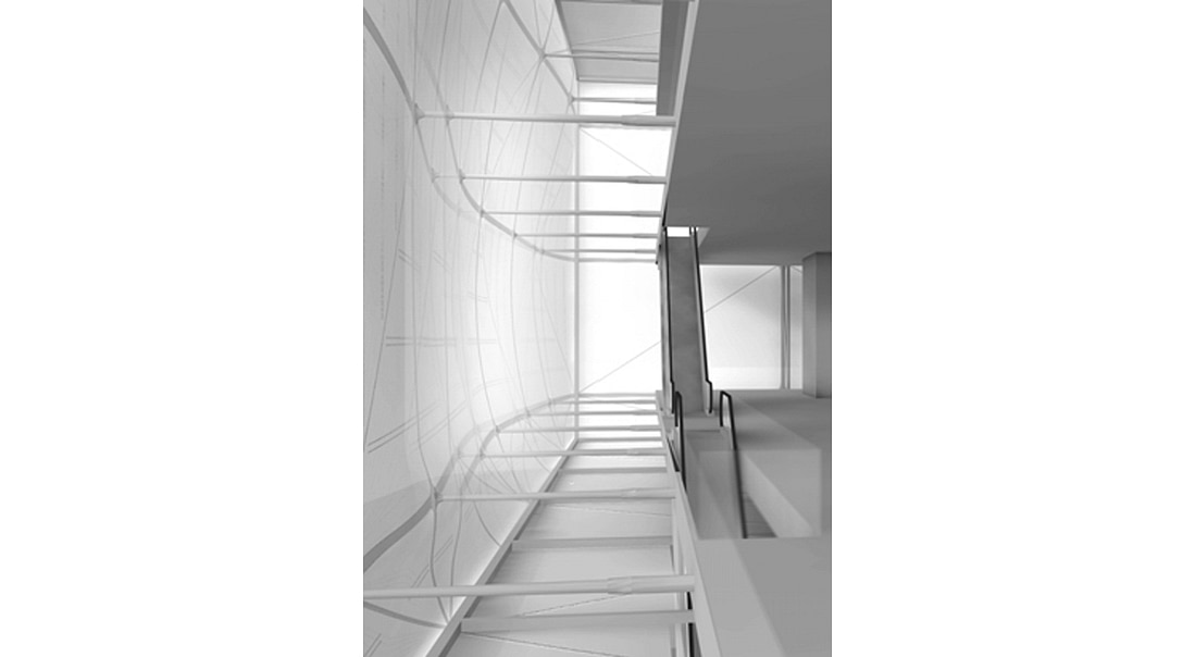 Essendo un polmone artificiale, una macchina perfetta che svolge diverse funzioni, (tra cui quella di far circolare l’aria all’interno dell’edificio) sarà un meccanismo leggero e mutante. Composto da una membrana, collegata a dei pistoni mobili grazie a dei corpi flettenti telescopici in fibra di vetro, foderati all’interno della pelle cosi da distribuire il carico uniformemente su tutta la parete mobile.